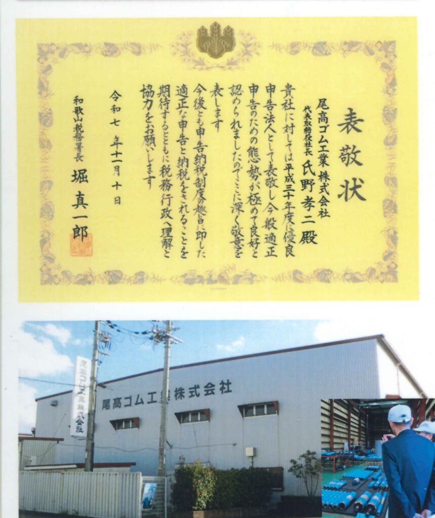 この度、当社は和歌山税務署より「優良申告法人」として選定され、表彰状を授与されました。 「優良申告法人」とは、税務調査において経営内容が極めて優良であり、かつ適正な申告と納税を継続していると認められた企業に対して贈られるものです。 今回の表彰を励みに、今後も適正な申告・納税を通じて社会に貢献するとともに、皆様からより一層信頼される企業を目指して精進してまいります。